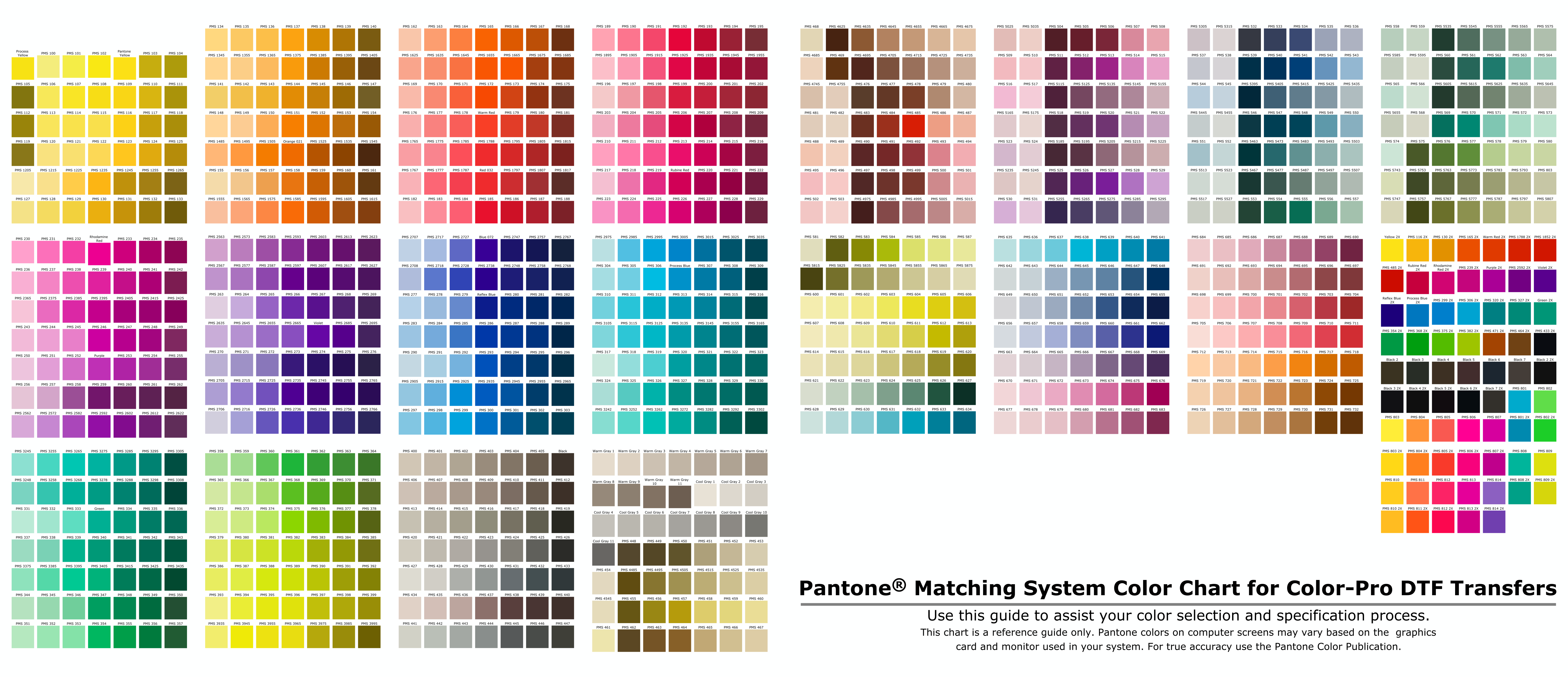 The simplest way to ensure you know exactly what your design color will translate to when printed is with these Color Charts.