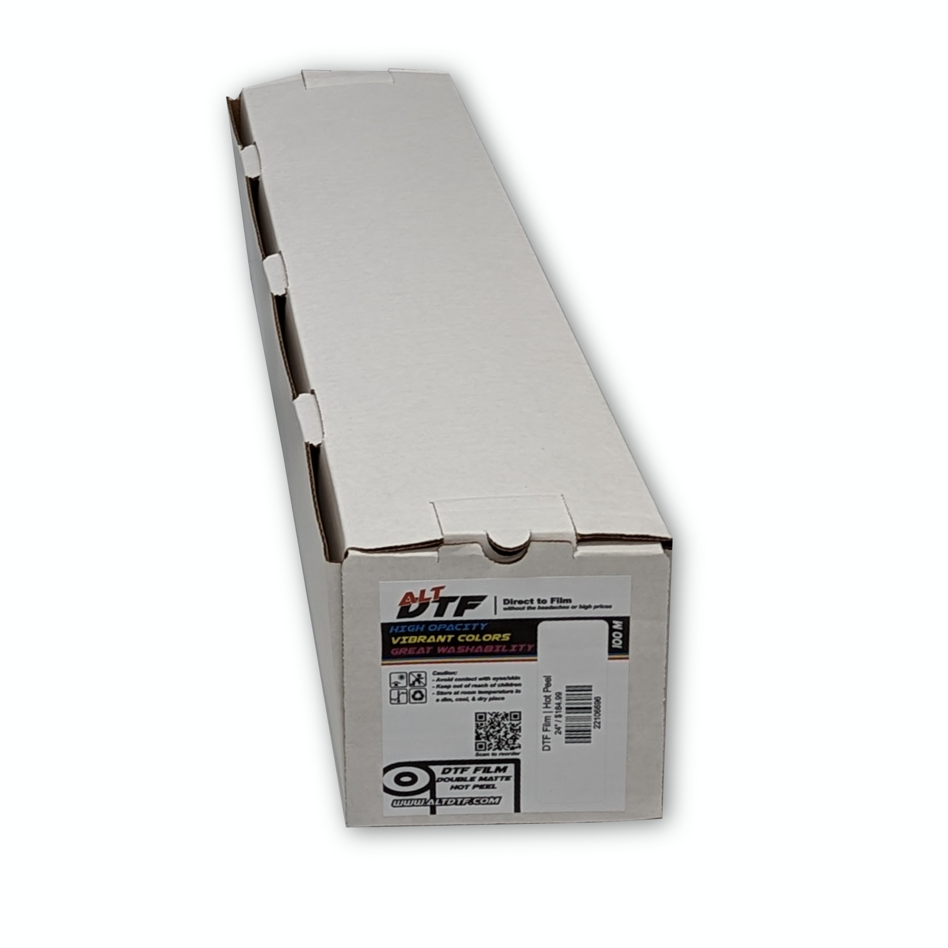 325' Rolls of Double Matte Hot Peel DTF Film will increase your print quality, hold all the ink you can throw at it and look great. The matte coating on the non-print side allows this film to move through the printer, across heated platens, and through your shaker without creating drag or static electricity.